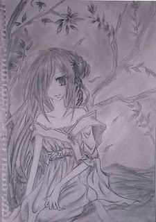 右1,是于萱的作品,是雪女為主題,用了淺淺的色調表現出冷調與空寂。