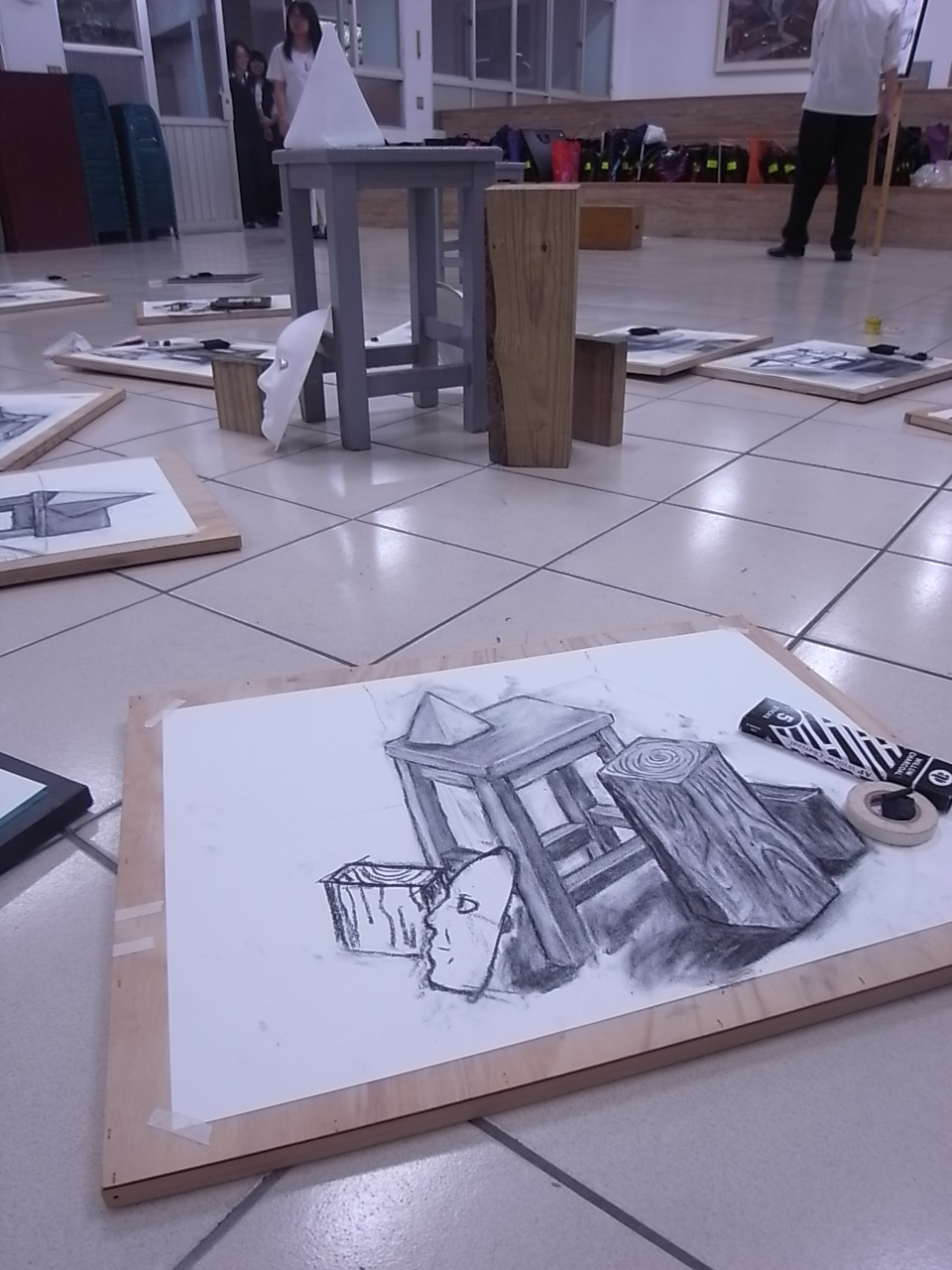 這天在美術教室,有寬敞的空間,又有明亮的燈光,實在是好棒的環境。