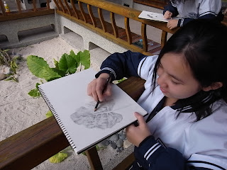這次是實物觀察的素寫,讓大家有適當的距離觀察外,也訓練大家的觀察力。