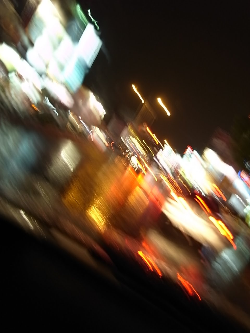 這是我利用下雨天玻璃上流動的水拍的夜景,可以創造出很不同的濾鏡效果。